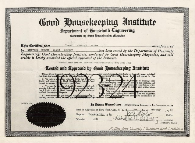 1900 Washer Company A. J. Desand Akka Beatty Brothers Beatty, William George Dominion Appliance Company Electric Shop Good Housekeeping Hahn, Oscar International Plowing Match King, H. (Mrs.) Mount Royal Hotel Nineteen Hundred Washer Company Incorporated Ramore, J. W. Ramore, Julie United States Testing Company Incorporated W. R. Boustred Limited Western Fair |