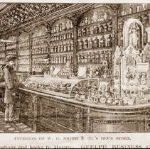 Allan, A. S. (Sherriff) Allan, David (Sr.) Allan, William Alling, Robert (Dr.) Arkell, Henry Arkell, Thomas Armstrong, J. B. Bell, Matthew Bell, W. J. Bell, William Chadwick, Fredrick Jasper Chase, Caleb Corporation of the City of Guelph Dunlop, William (Tiger) Elliott, George Goldie, James Gore Bank Halliday, Thomas Harris, John Harvey, John Heffernan, Thomas Herod, George S. (Dr.) Hewer, James Higinbotham, Nathaniel (Col.) Hill, Jessie (Miss) Hobson, Joseph Hood, G. B. Hough, James Howard, George Howitt, Henry Orton (Dr.) Inglis, John Innes, James Kennedy, William Kennedy, William (Mrs.) Keogh, Christopher (Mrs.) Kloepfer, Christian Knowles, W. G. S. Knowles, W. S. G. Laidlaw, Thomas Lamprey, J. A. Lynch, Thomas Lyon, James Walter MacDonald MacDonald, John MacKenzie, W. F. Mahoney, Harry Massie, James Matthews, Grannis (Mrs.) Mays, James McLachlan, Alexander McLean, John Melvin, Robert Mitchell, Richard Morrison Nelson, R. E. Orton, Henry (Dr.) Parker Peterson, Henry William Raymond, Charles Robertson, Adam Robson, R. B. Romaine, Charles Sandilands, Thomas Sleeman, George Smith, John Smith, Samuel Smith, W. G. Stirton, David Stone, Frederick William Sunley, George Sunley, Noah Sunley, William W. G. Smith's Drug Store |