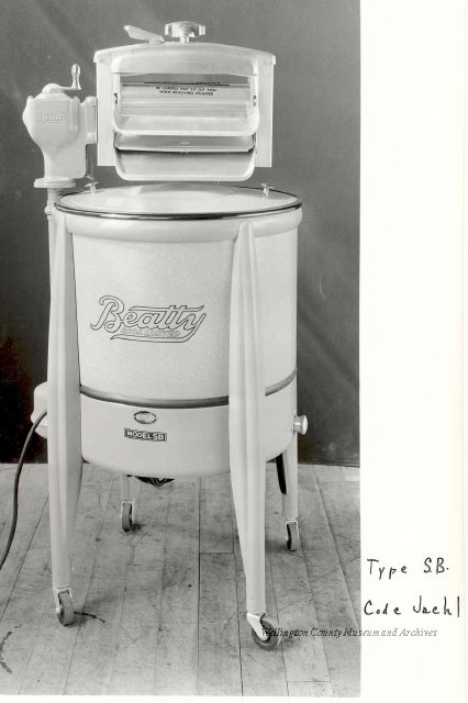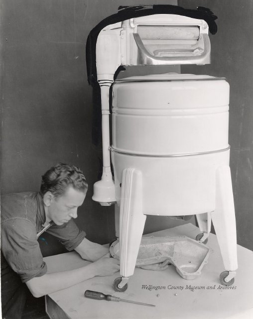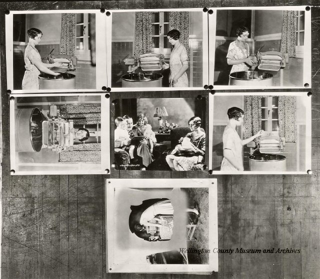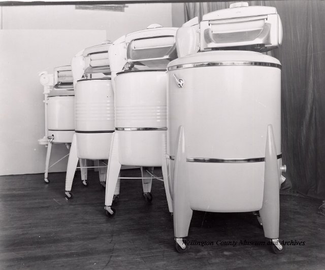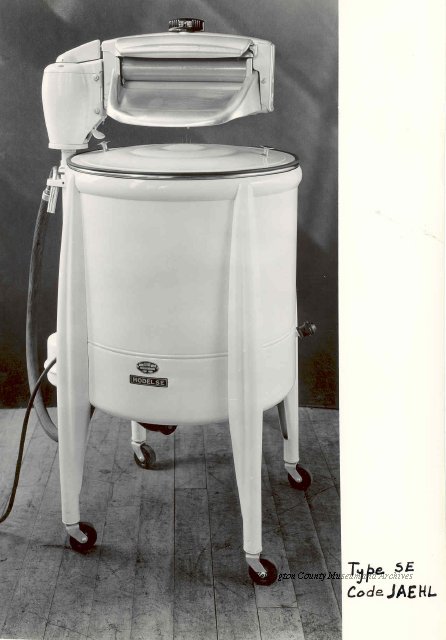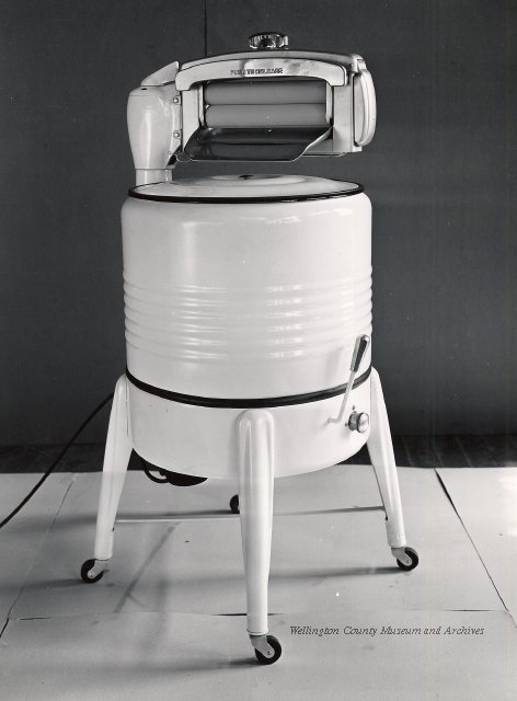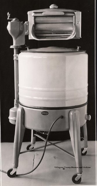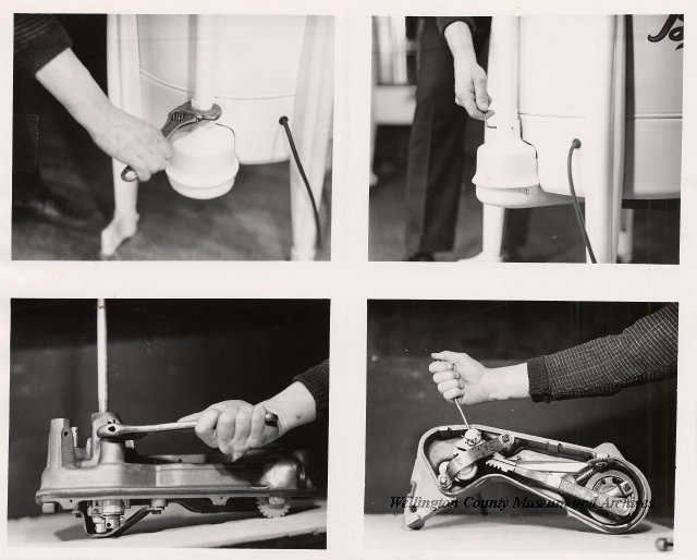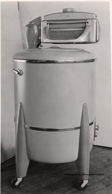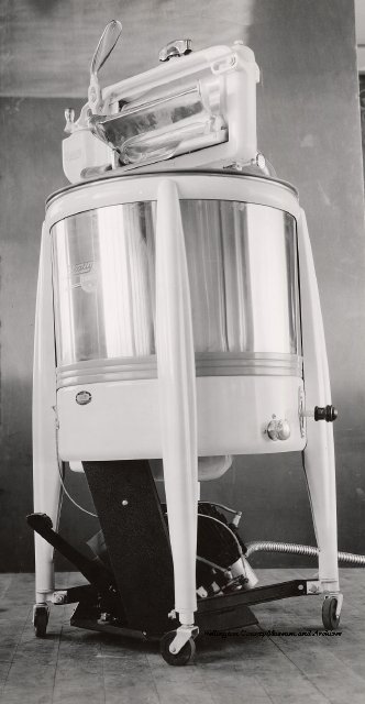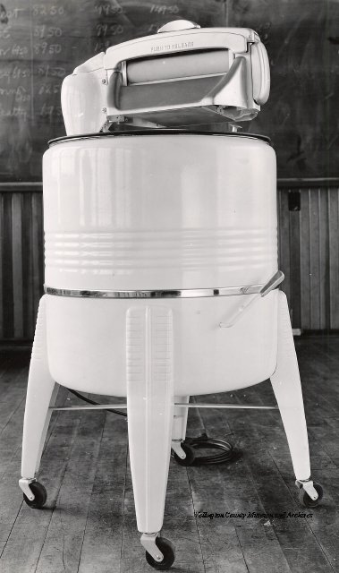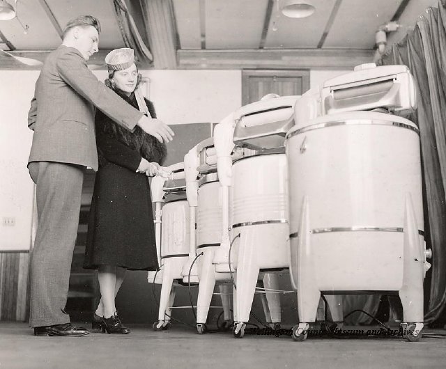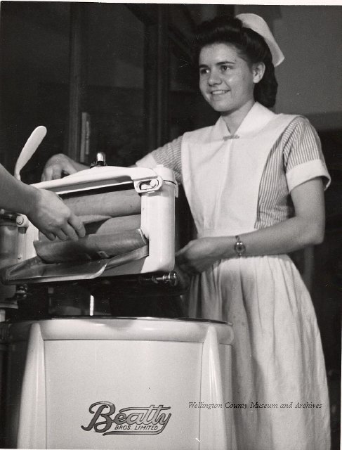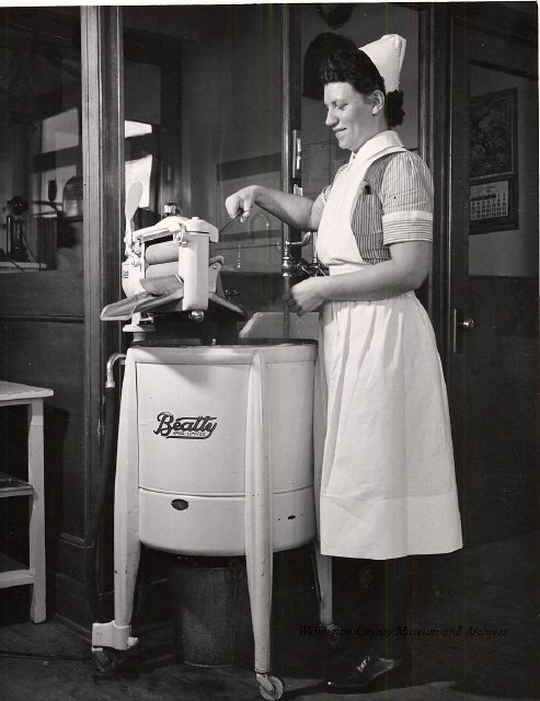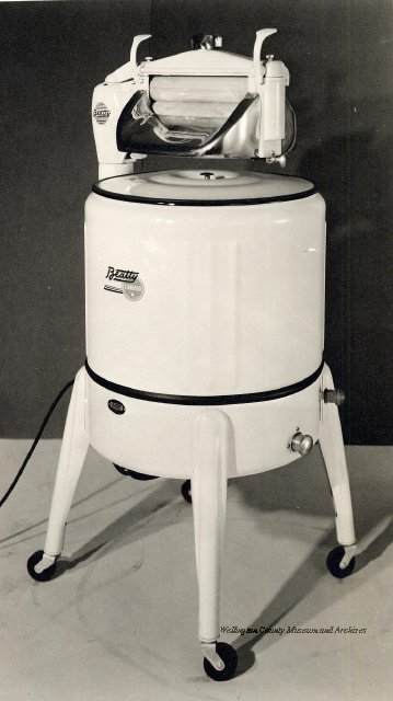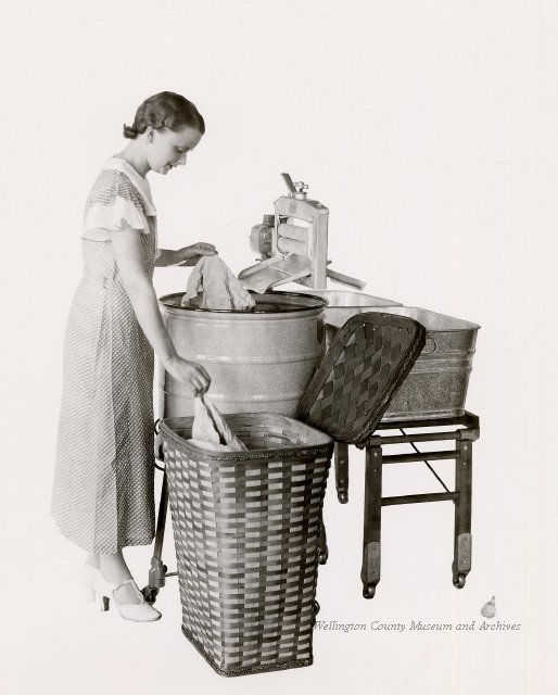 Beatty Bros., Fergus, Series 08, Photographs: Subseries 20, Washers, ph 26594 - ph 26705, 1939-ca.1950. Beatty Bros., Fergus, Series 08, Photographs: Subseries 20, Washers, ph 26594 - ph 26705, 1939-ca.1950. Mainly 8"x 10" b&w prints, removed from the photograph files indicated, numbered 5-90, and variously titled, and from file "Historical File No.979 - Beatty Washers / Photos". Photos are listed in the order of the files in which they were found. - ph 26594: Cutout, washer unidentified. Removed from file: "57. [Model] "2A" washer - photo file". - ph 26595: 2 images, Model "SE" [with different wringers]; one print with text on reverse: "Model 'SE' with pump for Spilhaus & Co., Capetown, S. Africa". Removed from file: "58. Export washers, photograph file". - ph 26596: [photo 10341 / neg.5949] Model " SE" washer (export) for S. Africa with Lovell wringer. Removed from file: "58. Export washers, photograph file". - ph 26597: Model "1A / Madeleine" for export. Removed from file: "58. Export washers, photograph file". - ph 26598: Model "SB" washer. Removed from file: "58. Export washers, photograph file". - ph 26599: 3 images, Model "Genalex" washer. Removed from file: "58. Export washers, photograph file". - ph 26600: Model "4A / Standard" washer. Removed from file: "58. Export washers, photograph file". - ph 26601: Model "ESB" engine drive washer. Removed from file: "58. Export washers, photograph file". - ph 26602: View into tub, Model "5A" washer. Removed from file: "58. Export washers, photograph file". - ph 26603: Dominion "Streamliner" washer. Removed from file: "58. Export washers, photograph file". - ph 26604: Portrait, 3/4 length, of King George and Queen Elizabeth, ca.1939. Removed from file: "58. Export washers, photograph file". - ph 26605: 5 images, man and woman with young boy and girl, and washer; in studio setting. Removed from file: "58. Export washers, photograph file". - ph 26606: 4-view sheet, hands with tools. Removed from file: "58. Export washers, photograph file". - ph 26607: Washer ["3A"?] with many vertical ribs on tub [unidentified]. Removed from file: "58. Export washers, photograph file". - ph 26608: 2 views, unidentified washer. Removed from file: "58. Export washers, photograph file". - ph 26609: 6 views, unidentified washers. Removed from file: "58. Export washers, photograph file". File: "60. Model "H" Hand washers, sample photo file" [EMPTY]. - ph 26610: Woman model / negative images]. Removed from file: "62. Washer Model "E". - ph 26611: 2 images, detail; men standing on washer drum/tub; [see also Model "M", file 65. Removed from file: "62. Washer Model "E". - ph 26612: Model "E". Removed from file: "62. Washer Model "E". - ph 26613: 2 men and woman with hat, with washer Model "E". Removed from file: "62. Washer Model "E". - ph 26614: Woman with Model "E" washer. Removed from file: "62. Washer Model "E". - ph 26615: Shaft and belt-driven laundry; Photo: Pringle & Booth, Toronto. Removed from file: "63. Old methods of washing". - ph 26616: Removed from file: "63. Old methods of washing". - ph 26617: 2 images within circle: woman with washtub and washboard, child. Removed from file: "63. Old methods of washing". - ph 26618: Model "R" washer. Removed from file: "64. Washer Model "R". - ph 26619: Closeup views, underneath of Model "M" [see also Model "E", file 62]. Removed from file: "65. Washer Model "M". - ph 26620: 2 views, Model "M" washer. Removed from file: "65. Washer Model "M". - ph 26621: Close-up, control handle. Removed from file: "65. Washer Model "M". - ph 26622: Woman model, with washer, laundry tubs, bench, basket. Removed from file: "65. Washer Model "M". - ph 26623: Washers lined up; overhead view into tub. Removed from file: "69. Washers - misc...". - ph 26624: Cutout, Model "Genalex" washer. Removed from file: "69. Washers - misc...". - ph 26625: 9 images, Beatty washer in institution with children; Eatonia wringer. Photos: Andre G. de Tonnancour, Montreal. - ph 26626: 2 images of washer, "not to be used for advertising or selling purposes / See Fred Armour, Engineering Dept. ... for E. Stevenson (W. Golightly), 4 July /39. Removed from file: "69. Washers - misc...". - ph 26627: Early washer; laundry tubs and washboards at right of image. Removed from file: "69. Washers - misc...". - ph 26628: "Graveyard at Toronto washer store". Removed from file: "69. Washers - misc...". - ph 26629: Woman model with washer, tubs, basket. Removed from file: "69. Washers - misc...". - ph 26630: Man in judge's robes[?]. Removed from file: "69. Washers - misc...". - ph 26631: Woman's hands and watch. Removed from file: "69. Washers - misc...". - ph 26632: Woman model with washer, young boy. Removed from file: "69. Washers - misc...". - ph 26633: Multi-views of women models. Removed from file: "69. Washers - misc...". - ph 26634: Line drawings, for washing machine advertisement[?]. Removed from file: "69. Washers - misc...". - ph 26635: Line drawings for washing machine advertisement[?]. Removed from file: "74. "Time Saver" & "White Cap". - ph 26636: Woman model holding curtains. Removed from: "75. Laundry illustrations ...". - ph 26637: Coloured illustration of King George and Queen Elizabeth with the Princesses Elizabeth and Margaret; see ph XXXXX. Removed from file: "76. Royal family washer illustrations". - ph 26637a: Sketch of King George and Queen Elizabeth with the Princesses Elizabeth and Margaret. - ph 26638: 2 images, woman with block-pattern dress, with Model "8A" and "8B" washers. Removed from file: "79. Model "8A" electric and engine drive washer, photograph file". - ph 26639: 3 images, man with electric motor and gasoline engine; close-up of bottom plate. Removed from file: "79. Model "8A" electric and engine drive washer, photograph file". - ph 26640: "Standard" / Model "8A"[?] washer. Removed from file: "79. Model "8A" electric and engine drive washer, photograph file". - ph 26641: Hand on control, vertical-ribbed tub; text on reverse: "Change d