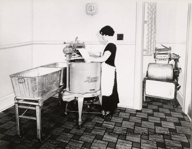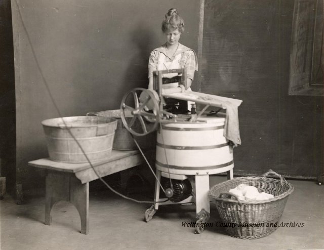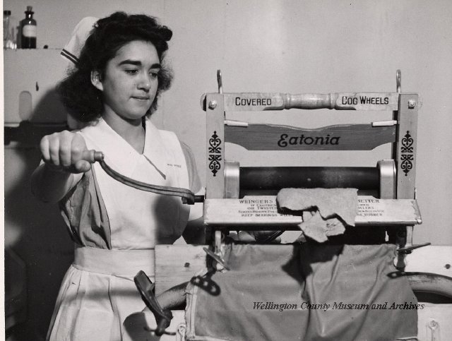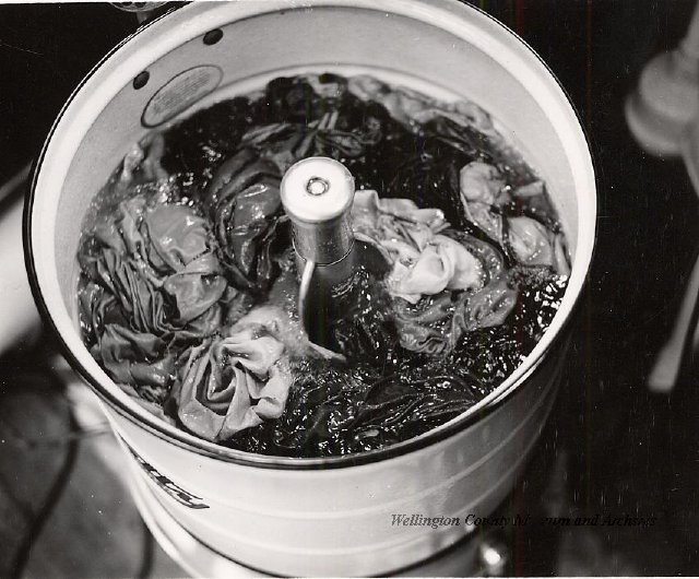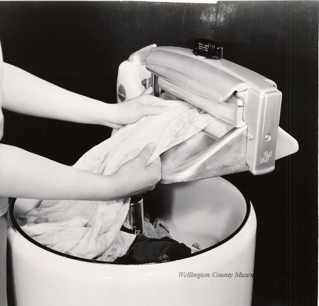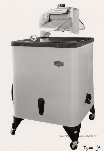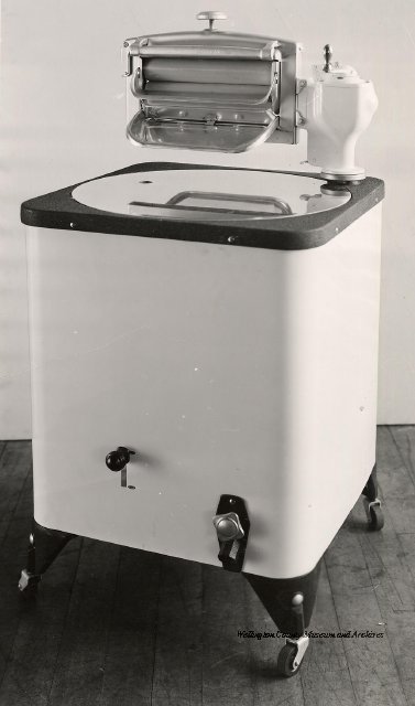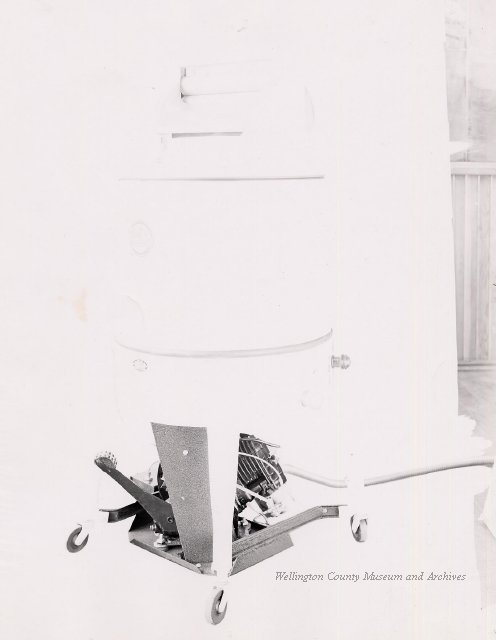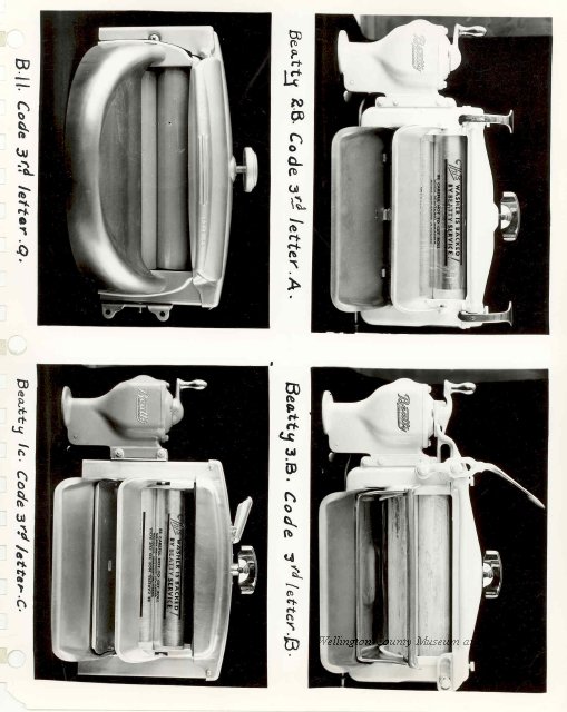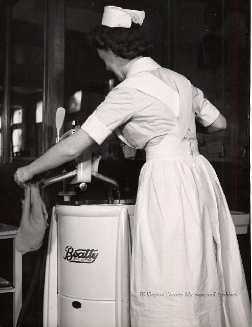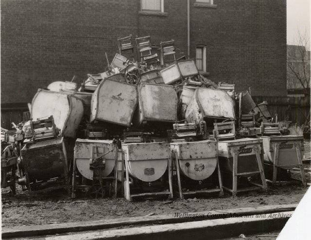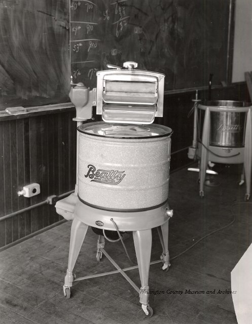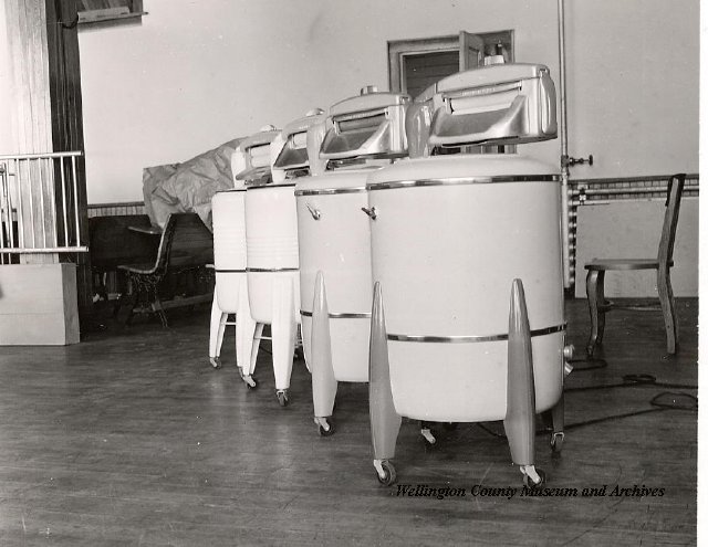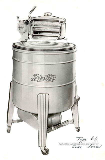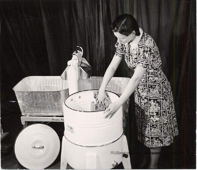 Beatty Bros., Fergus, Series 08, Photographs: Subseries 20, Washers, ph 26594 - ph 26705, 1939-ca.1950. Beatty Bros., Fergus, Series 08, Photographs: Subseries 20, Washers, ph 26594 - ph 26705, 1939-ca.1950. Mainly 8"x 10" b&w prints, removed from the photograph files indicated, numbered 5-90, and variously titled, and from file "Historical File No.979 - Beatty Washers / Photos". Photos are listed in the order of the files in which they were found. - ph 26594: Cutout, washer unidentified. Removed from file: "57. [Model] "2A" washer - photo file". - ph 26595: 2 images, Model "SE" [with different wringers]; one print with text on reverse: "Model 'SE' with pump for Spilhaus & Co., Capetown, S. Africa". Removed from file: "58. Export washers, photograph file". - ph 26596: [photo 10341 / neg.5949] Model " SE" washer (export) for S. Africa with Lovell wringer. Removed from file: "58. Export washers, photograph file". - ph 26597: Model "1A / Madeleine" for export. Removed from file: "58. Export washers, photograph file". - ph 26598: Model "SB" washer. Removed from file: "58. Export washers, photograph file". - ph 26599: 3 images, Model "Genalex" washer. Removed from file: "58. Export washers, photograph file". - ph 26600: Model "4A / Standard" washer. Removed from file: "58. Export washers, photograph file". - ph 26601: Model "ESB" engine drive washer. Removed from file: "58. Export washers, photograph file". - ph 26602: View into tub, Model "5A" washer. Removed from file: "58. Export washers, photograph file". - ph 26603: Dominion "Streamliner" washer. Removed from file: "58. Export washers, photograph file". - ph 26604: Portrait, 3/4 length, of King George and Queen Elizabeth, ca.1939. Removed from file: "58. Export washers, photograph file". - ph 26605: 5 images, man and woman with young boy and girl, and washer; in studio setting. Removed from file: "58. Export washers, photograph file". - ph 26606: 4-view sheet, hands with tools. Removed from file: "58. Export washers, photograph file". - ph 26607: Washer ["3A"?] with many vertical ribs on tub [unidentified]. Removed from file: "58. Export washers, photograph file". - ph 26608: 2 views, unidentified washer. Removed from file: "58. Export washers, photograph file". - ph 26609: 6 views, unidentified washers. Removed from file: "58. Export washers, photograph file". File: "60. Model "H" Hand washers, sample photo file" [EMPTY]. - ph 26610: Woman model / negative images]. Removed from file: "62. Washer Model "E". - ph 26611: 2 images, detail; men standing on washer drum/tub; [see also Model "M", file 65. Removed from file: "62. Washer Model "E". - ph 26612: Model "E". Removed from file: "62. Washer Model "E". - ph 26613: 2 men and woman with hat, with washer Model "E". Removed from file: "62. Washer Model "E". - ph 26614: Woman with Model "E" washer. Removed from file: "62. Washer Model "E". - ph 26615: Shaft and belt-driven laundry; Photo: Pringle & Booth, Toronto. Removed from file: "63. Old methods of washing". - ph 26616: Removed from file: "63. Old methods of washing". - ph 26617: 2 images within circle: woman with washtub and washboard, child. Removed from file: "63. Old methods of washing". - ph 26618: Model "R" washer. Removed from file: "64. Washer Model "R". - ph 26619: Closeup views, underneath of Model "M" [see also Model "E", file 62]. Removed from file: "65. Washer Model "M". - ph 26620: 2 views, Model "M" washer. Removed from file: "65. Washer Model "M". - ph 26621: Close-up, control handle. Removed from file: "65. Washer Model "M". - ph 26622: Woman model, with washer, laundry tubs, bench, basket. Removed from file: "65. Washer Model "M". - ph 26623: Washers lined up; overhead view into tub. Removed from file: "69. Washers - misc...". - ph 26624: Cutout, Model "Genalex" washer. Removed from file: "69. Washers - misc...". - ph 26625: 9 images, Beatty washer in institution with children; Eatonia wringer. Photos: Andre G. de Tonnancour, Montreal. - ph 26626: 2 images of washer, "not to be used for advertising or selling purposes / See Fred Armour, Engineering Dept. ... for E. Stevenson (W. Golightly), 4 July /39. Removed from file: "69. Washers - misc...". - ph 26627: Early washer; laundry tubs and washboards at right of image. Removed from file: "69. Washers - misc...". - ph 26628: "Graveyard at Toronto washer store". Removed from file: "69. Washers - misc...". - ph 26629: Woman model with washer, tubs, basket. Removed from file: "69. Washers - misc...". - ph 26630: Man in judge's robes[?]. Removed from file: "69. Washers - misc...". - ph 26631: Woman's hands and watch. Removed from file: "69. Washers - misc...". - ph 26632: Woman model with washer, young boy. Removed from file: "69. Washers - misc...". - ph 26633: Multi-views of women models. Removed from file: "69. Washers - misc...". - ph 26634: Line drawings, for washing machine advertisement[?]. Removed from file: "69. Washers - misc...". - ph 26635: Line drawings for washing machine advertisement[?]. Removed from file: "74. "Time Saver" & "White Cap". - ph 26636: Woman model holding curtains. Removed from: "75. Laundry illustrations ...". - ph 26637: Coloured illustration of King George and Queen Elizabeth with the Princesses Elizabeth and Margaret; see ph XXXXX. Removed from file: "76. Royal family washer illustrations". - ph 26637a: Sketch of King George and Queen Elizabeth with the Princesses Elizabeth and Margaret. - ph 26638: 2 images, woman with block-pattern dress, with Model "8A" and "8B" washers. Removed from file: "79. Model "8A" electric and engine drive washer, photograph file". - ph 26639: 3 images, man with electric motor and gasoline engine; close-up of bottom plate. Removed from file: "79. Model "8A" electric and engine drive washer, photograph file". - ph 26640: "Standard" / Model "8A"[?] washer. Removed from file: "79. Model "8A" electric and engine drive washer, photograph file". - ph 26641: Hand on control, vertical-ribbed tub; text on reverse: "Change d